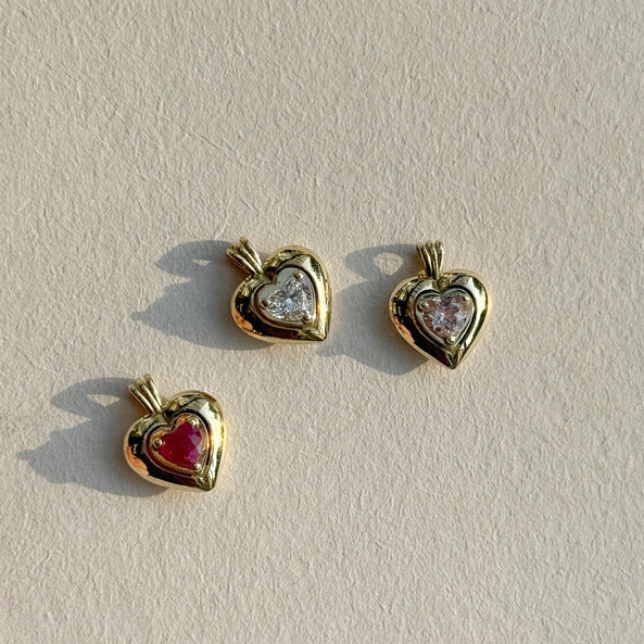 תליון לב משובצת אל זמני, אלגנטי ומלכותי עם טוויסט עיצובי של לב משובץ אבן חן לבחירה בליטוש לב .