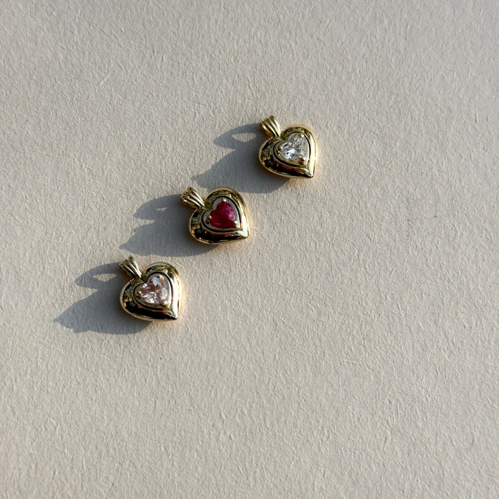 תליון לב דומיניק משובץ, זהב 14 קראט